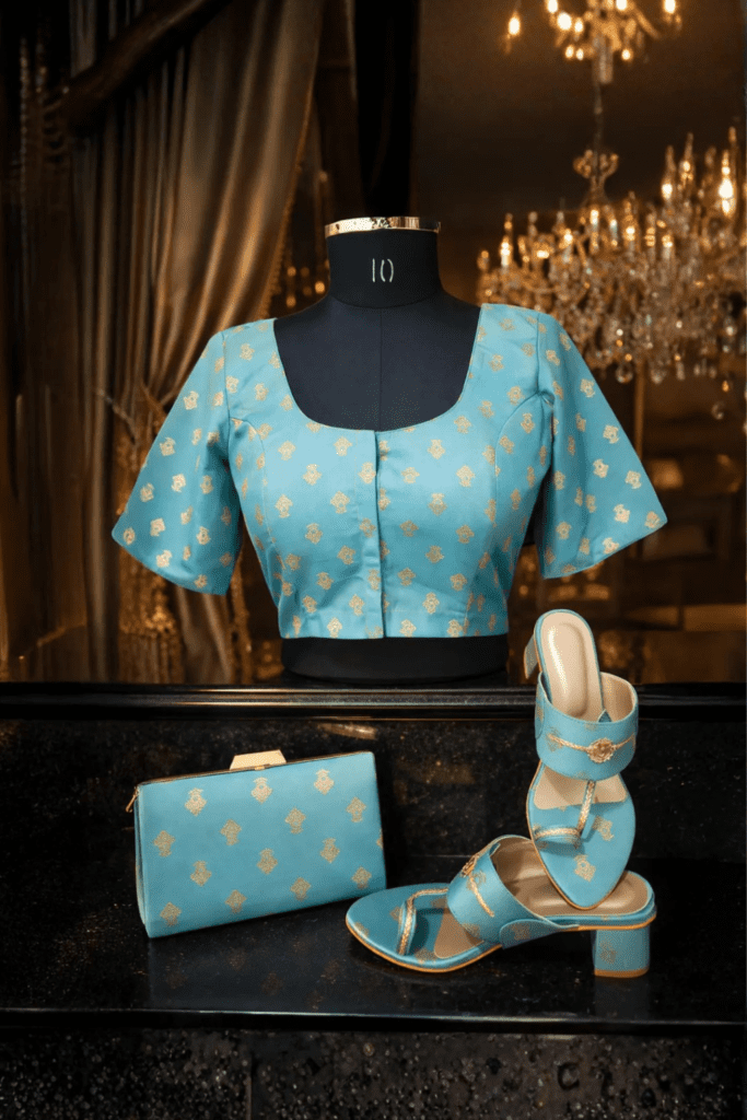 Explore our exclusive collection of handcrafted blouses, statement clutches, and bespoke footwear — blending timeless Indian craftsmanship with contemporary fashion.